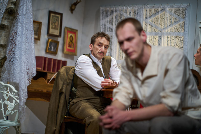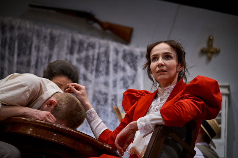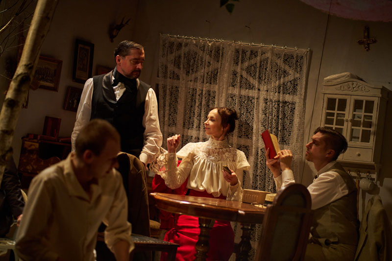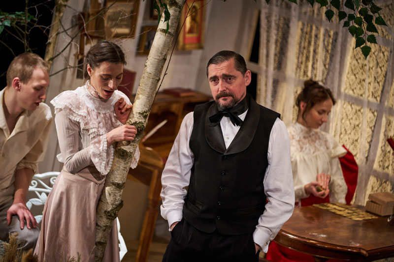 Čechovova ikonická hra rozvíjí téma neopětované lásky a milost- ného konfliktu i umělecký spor mezi mladou, nadějnou, experi- mentující generací a tou stárnoucí, legendární. Navzdory stáří hry jde o stále pulsující text, který v režii Jiřího Havelky ožívá ve výrazném výtvarném pojetí scénografa Dády Němečka